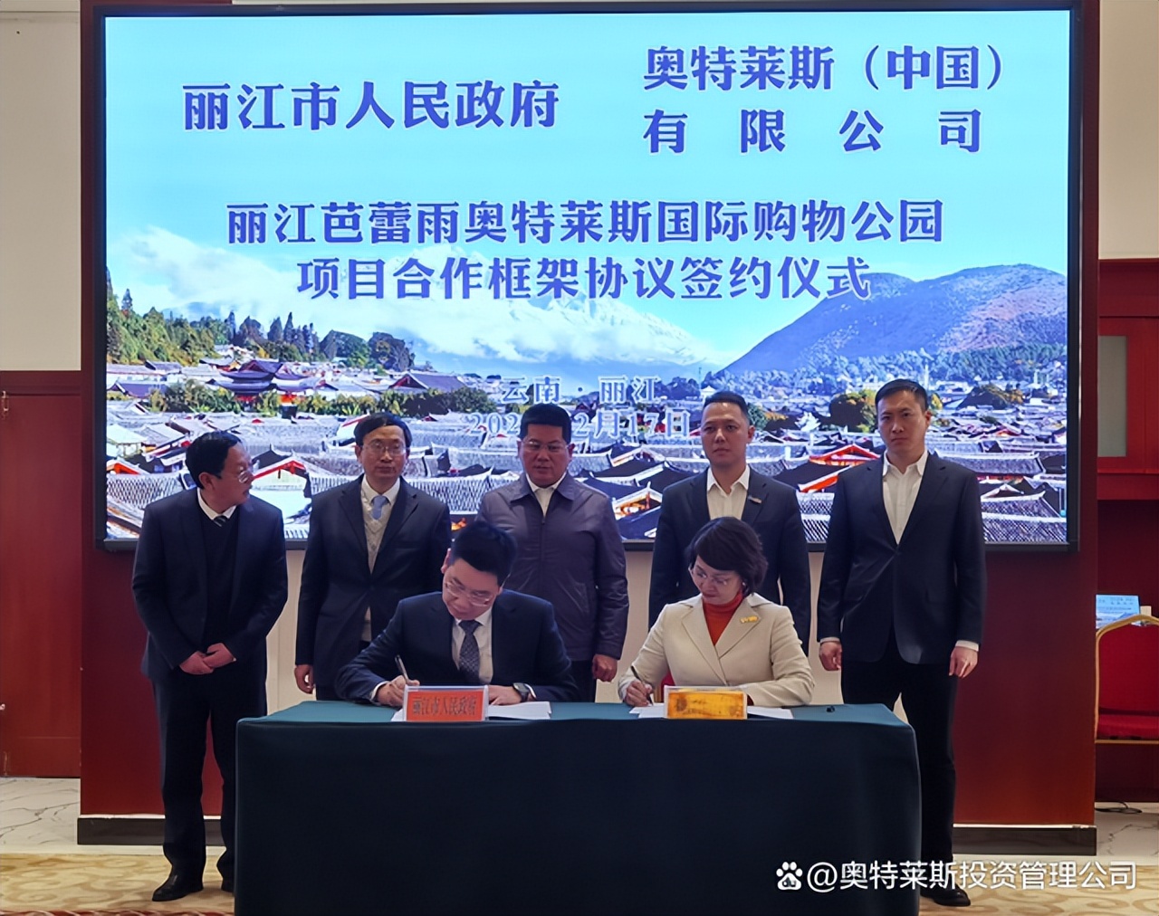 2月17日,奧特萊斯(中國)有限公司總裁拜訪麗江市政府,與麗江市蘇永忠市長在麗江座談,并見證《麗江芭蕾雨奧特萊斯國際購物公園項(xiàng)目合作框架協(xié)議》的簽署。奧特萊斯(中國)助理總裁李曉薩、投資拓展中心總經(jīng)理周毅,以及麗江市政府、市發(fā)改委、市投資促進(jìn)局、市住房和建設(shè)局、市文旅局、玉龍雪山管委會(huì)、玉龍縣政府等主要領(lǐng)導(dǎo)參會(huì)。