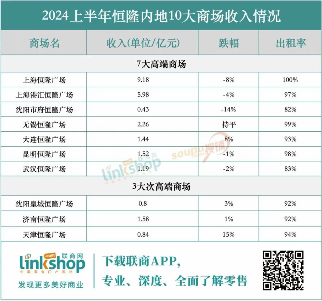 在恒隆集團的高端商場中,大連恒隆廣場脫穎而出,實現(xiàn)業(yè)績增長,得益于其成功轉(zhuǎn)型為地區(qū)高端零售地標并吸引高端品牌入駐。相比之下,上海港匯恒隆、沈陽市府恒隆、昆明恒隆及武漢恒隆等四大商場均面臨收入和租戶銷售下滑的挑戰(zhàn),而無錫恒隆則保持業(yè)績平穩(wěn)。