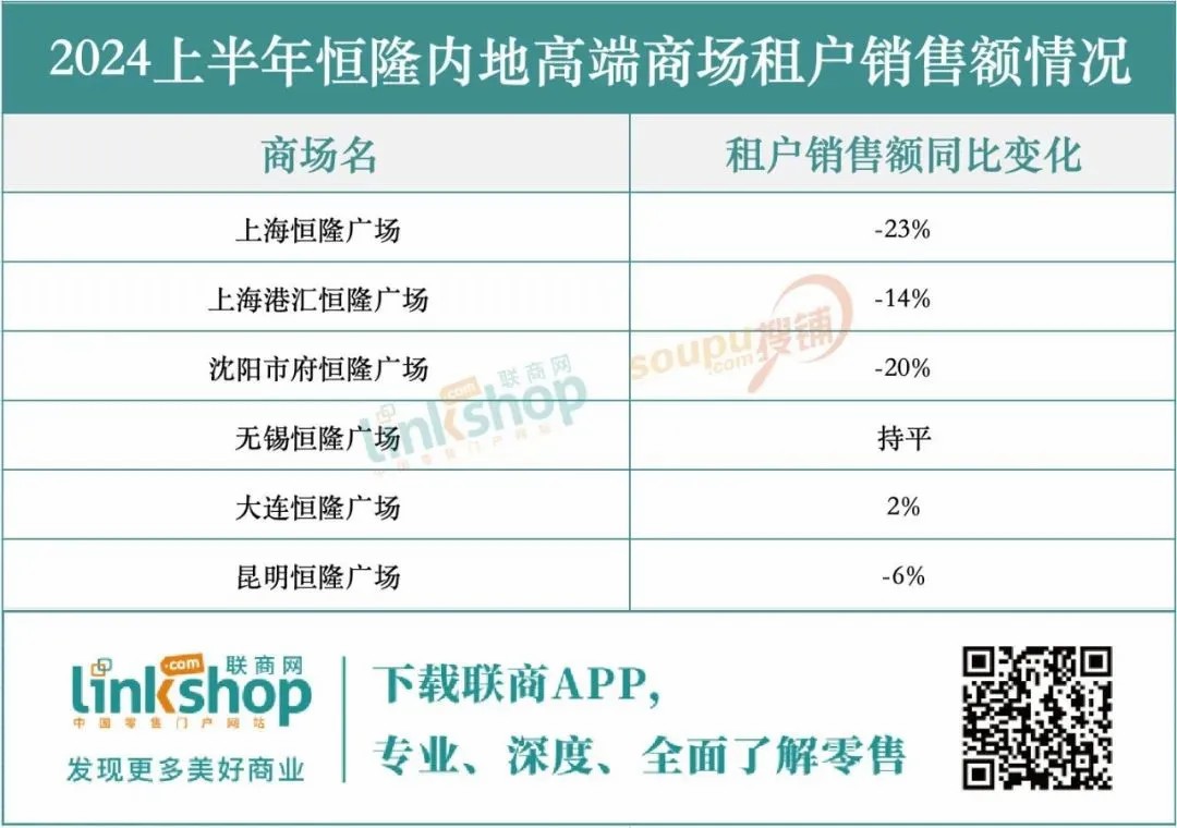 特別值得注意的是,恒隆集團在內(nèi)地的市場表現(xiàn)尤為嚴峻。內(nèi)地整體租賃收入同比下滑了4%,而租戶銷售額更是大幅下滑了13%,這些數(shù)據(jù)清晰地反映了內(nèi)地奢侈品消費市場的疲軟態(tài)勢。具體到零售物業(yè)方面,恒隆在內(nèi)地的商場組合收入也在2024上半年遭遇了3%的下滑,進一步凸顯了內(nèi)地市場面臨的挑戰(zhàn)。這一趨勢不僅影響了恒隆的短期業(yè)績,也可能對其長期戰(zhàn)略布局和市場信心產(chǎn)生深遠影響。