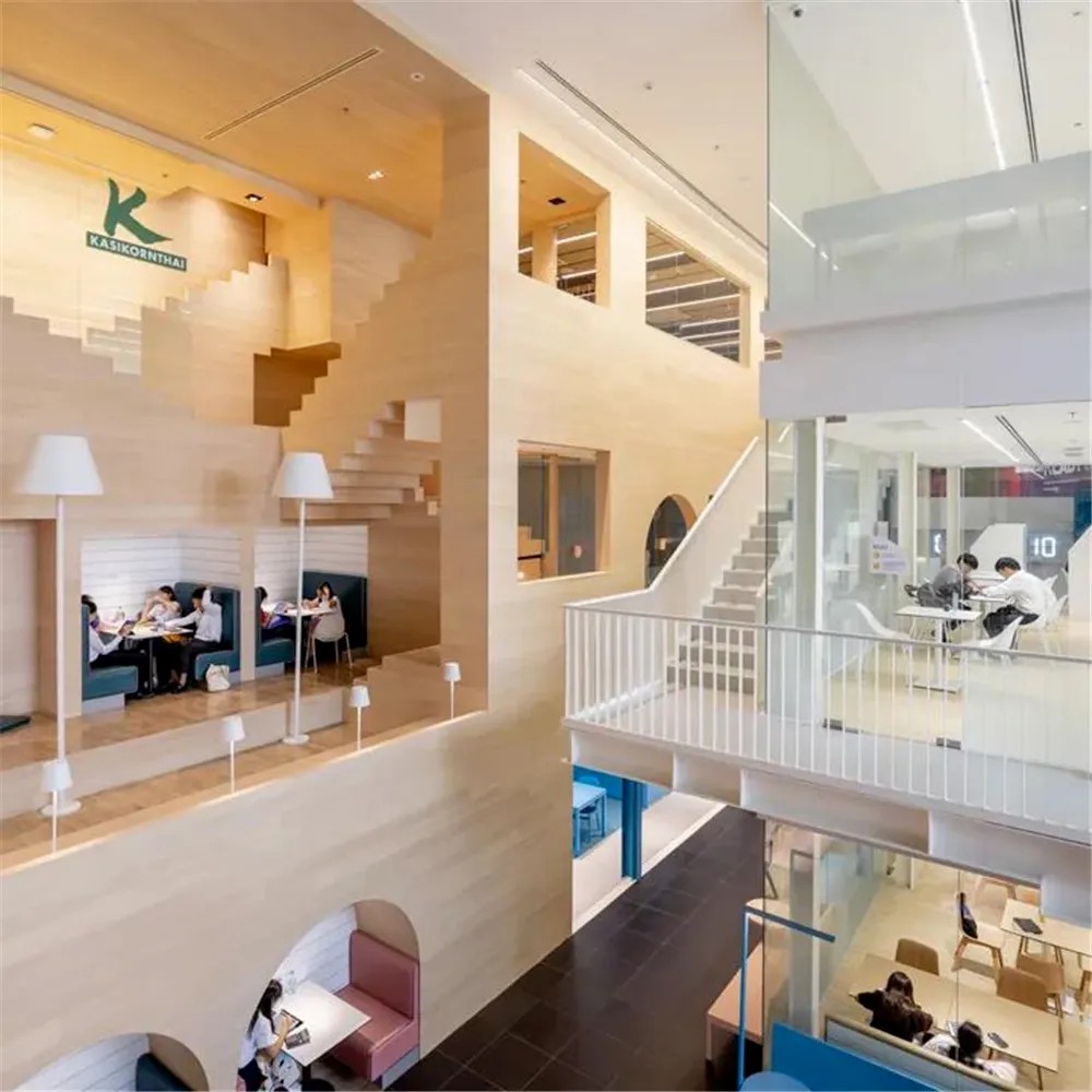SAMYAN CO-OP是購(gòu)物中心二樓的共享空間,含5個(gè)獨(dú)立又相連的建筑,設(shè)自習(xí)室、討論室、會(huì)議室等,對(duì)外開(kāi)放租賃。一樓售日常用品,二樓為生活服務(wù)類(lèi)店鋪,三樓融合泰國(guó)傳統(tǒng)與現(xiàn)代藝術(shù)風(fēng)格的空間。
