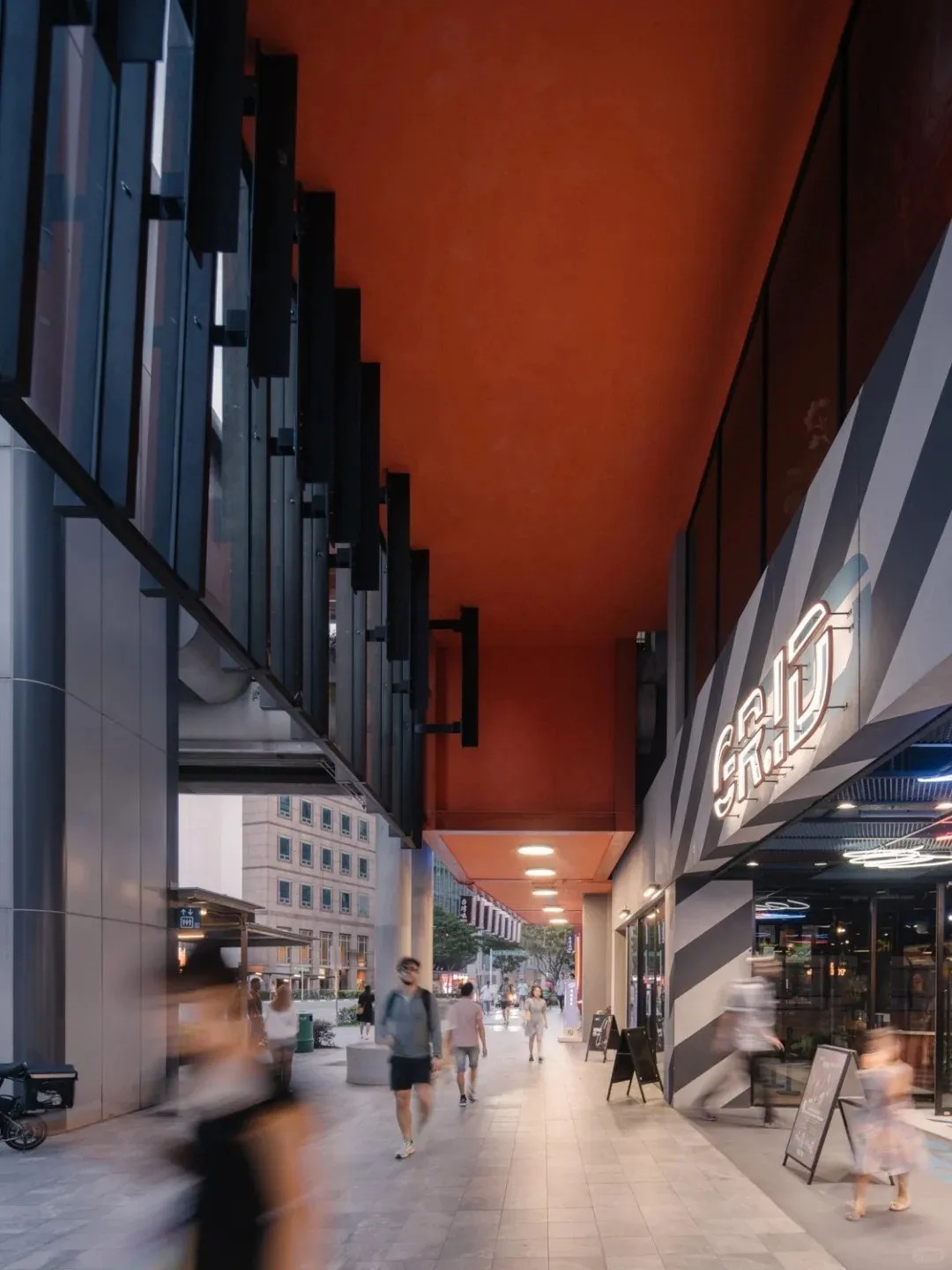 GRiD不僅是商業(yè)與教育中心,更是社區(qū)放松交流的關(guān)鍵場(chǎng)所。憑借獨(dú)特的后工業(yè)美學(xué),成功將街角轉(zhuǎn)變?yōu)榧缃弧Ⅲw驗(yàn)、休閑于一體的現(xiàn)代化社區(qū)中心,不僅提升了建筑功能與視覺(jué)魅力,更為周邊居民帶來(lái)了全新的生活方式與情感價(jià)值體驗(yàn),成為社區(qū)生活的活力源泉。