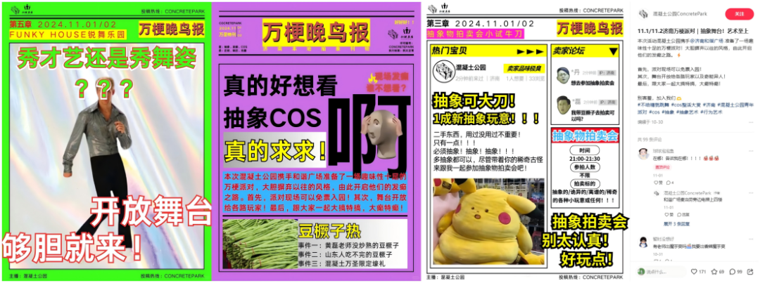 此外,對于購物中心而言,搞抽象也適用于私域生態(tài)及社群運營。對比“正經”的輸出式海報,抽象策略更易吸引同頻人群聚集,讓購物中心的每一次發(fā)聲更具話題傳播度,同時博得目標客群的真實好感,也讓“參加購物中心的活動”變成一種生活方式。