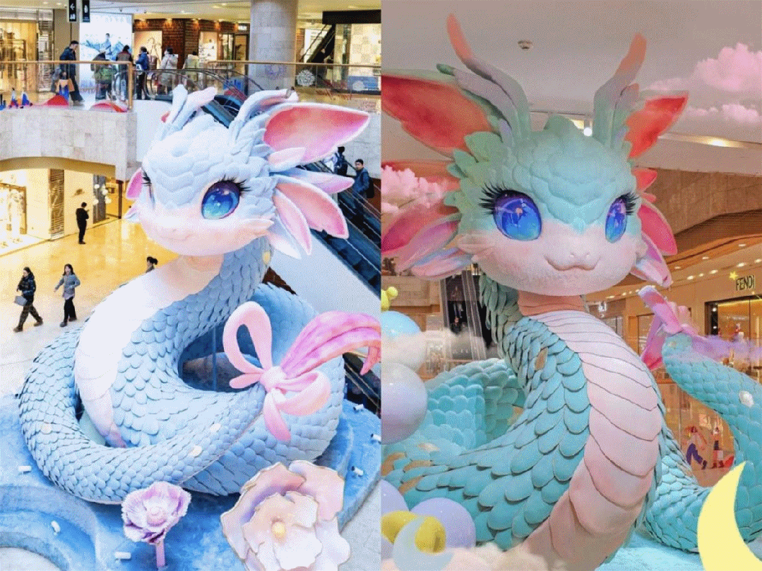 祥龍辭舊歲,靈蛇迎新春。隨著生肖的輪回之針指向蛇年,眾多購物中心已經(jīng)開始布置一系列蛇年主題裝飾,巧妙地將空間與藝術(shù)結(jié)合,以期在新春佳節(jié)期間營造出濃厚的節(jié)日氣息,向消費者傳遞出美好的祝福。
