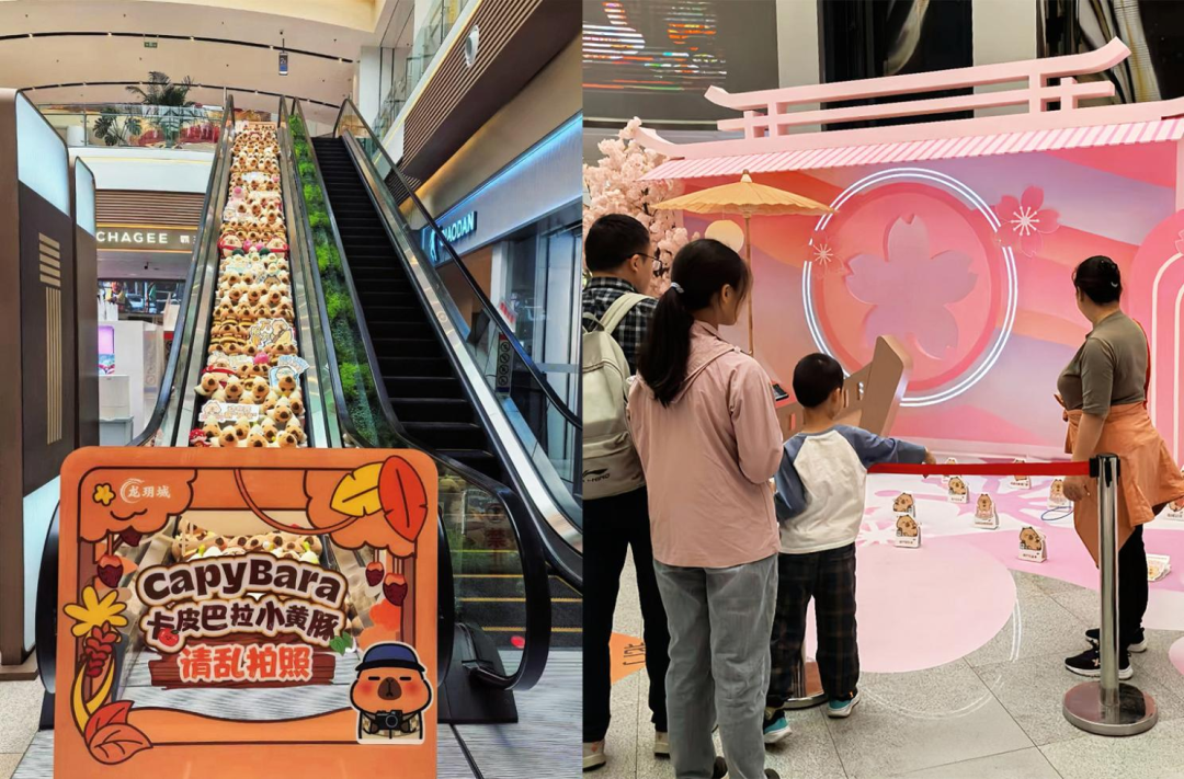 龍玥城自開業(yè)以來根植“悅己主義”持續(xù)打造有趣的沉浸式互動(dòng)體驗(yàn)活動(dòng),今年五一期間更開啟了一場(chǎng)玩趣生活嘉年華,從潮流IP打卡到科普研學(xué),從傳統(tǒng)游戲到驚險(xiǎn)表演,精準(zhǔn)覆蓋消費(fèi)者多元化需求??ㄆぐ屠↑S豚電梯瀑布快閃活動(dòng)設(shè)置了一整個(gè)電梯的潮流IP卡皮巴拉小黃豚,結(jié)合皮巴拉主題的立牌套圈游戲,吸引眾多消費(fèi)者前來打卡。